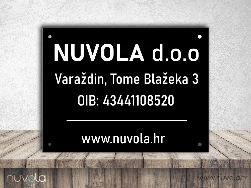 • Montaža: tabla dolazi s obostrano ljepljivom trakom sa stražnje strane. Po potrebi možemo probušiti i rupe.