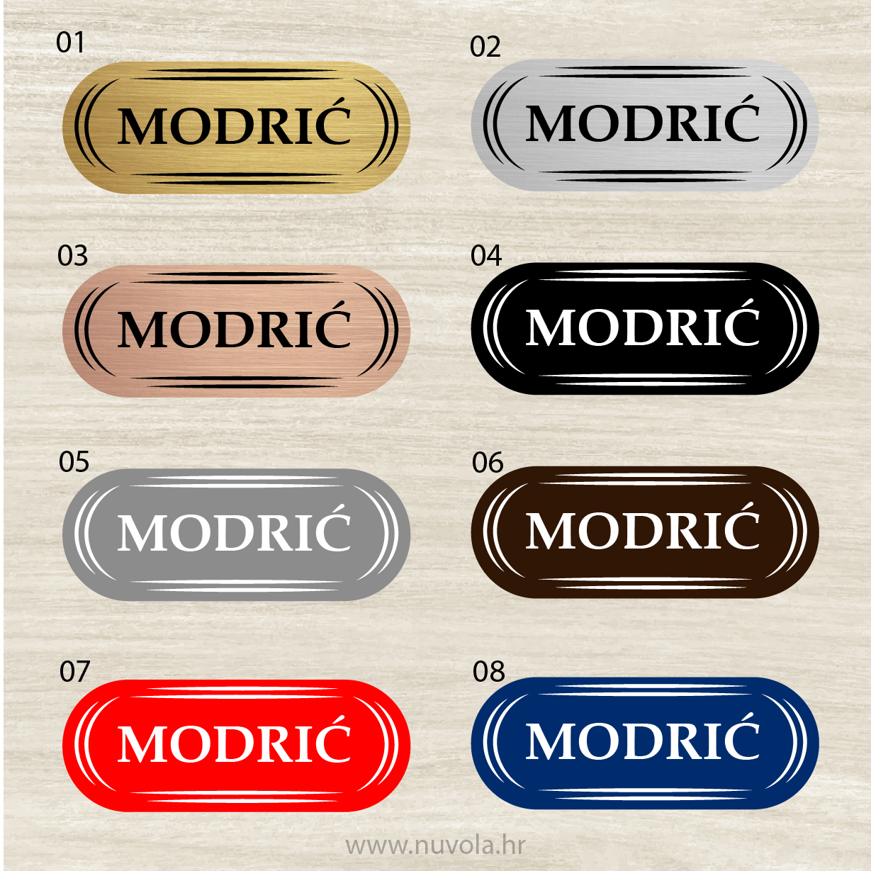 Dolaze u raznim dimenzijama i oblicima, a u ponudi je i nekoliko boja. U mogućnosti smo izraditi natpisne pločice bilo kojeg oblika i većih dimenzija.