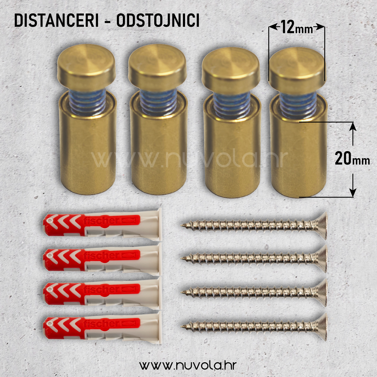 • Dimenzije: 20 mm udaljenost od podloge, 12mm promjer ukrasnog poklopca